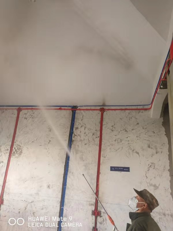 公司工作人员在复地上城施药治理白蚁